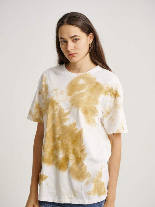 Big Leaves Jati Plant Scattered Pattern Eco Print Short Sleeve T-shirt